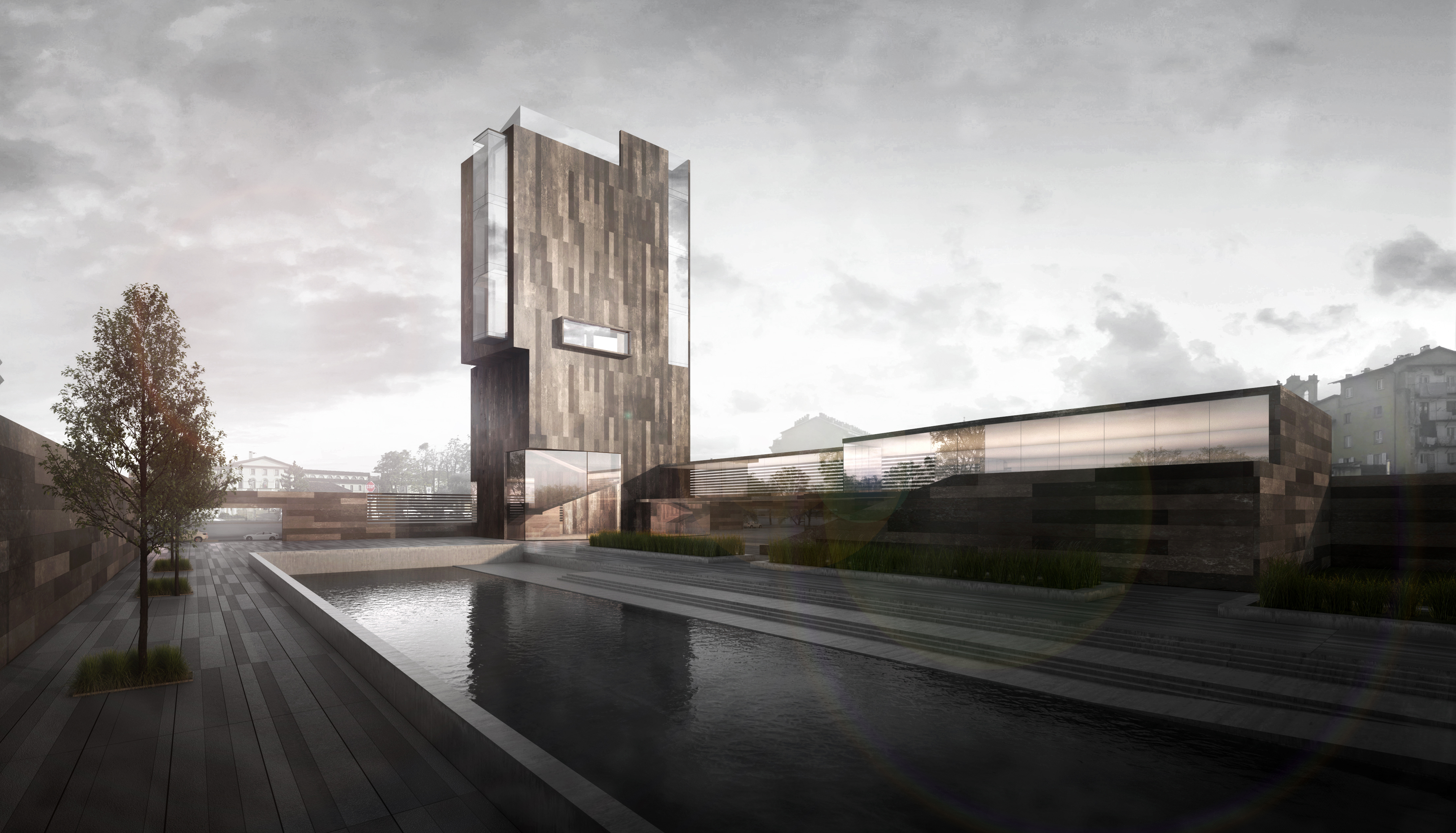 A composed exterior shell controls public entry, as well as access to light and views. The tower is designed to remove viewers from the space of the city, with specific apertures that allow visual reconnection.
